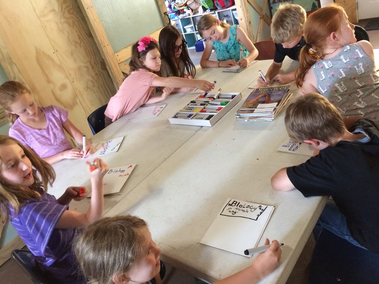 Both groups are wrapping up their grammar lessons for the year! We will continue to review the parts of speech (and diagramming for the Guinea Group), and we will combine their grammar review with the work they are doing in reading class. For instance, the Cow Group diagrammed selected sentences from their Ivan reading. we will continue to review concepts from grammar through to the end!In science class, we have begun the Life Science unit. Last week, the students had an overview of biology and the five kingdoms of classification. Today, we made Biology Mini-books. The class will be using these mini-books at home and in class to collect information on each of the five kingdoms.
